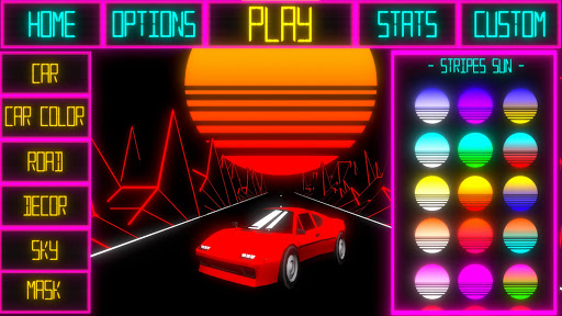 পূর্ণ যান একটি বাস্তব synthwave বায়ুমন্ডলে এই rhythmic খেলা গতি। 80 এর এবং retrowave শৈলী মধ্যে সুন্দর এবং ভবিষ্যত গ্রাফিক্স।