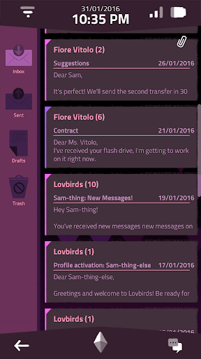 - একটি নকল স্মার্টফোন ইন্টারফেসের মাধ্যমে আখ্যানটি প্রবর্তনের একটি নিমজ্জন এবং স্বজ্ঞাত উপায়।