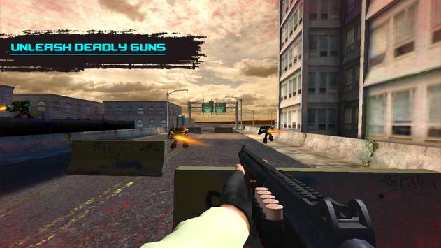 The robots are becoming a menace to the endangerment of human species. Control your own destiny, grasp your fighting gun and advance through suspenseful action packed levels to restore the lost peace of the modern city. Defend your base with tactical strategy. Walk through different battle zones, hide behind barriers to avoid robots fire and grenades. You might face low ammo and low medical health issues. So use bullets and health kits carefully.