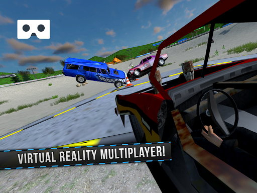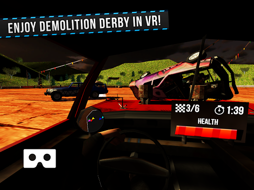 রিয়েল ডেমোলিশন ডার্বি কার চাকা পিছনে বসুন এবং কিছু রিয়েল টাইম মাল্টিপ্লেয়ার ভিআর রেসিং অ্যাকশন জন্য প্রস্তুত হন!