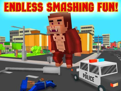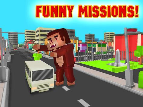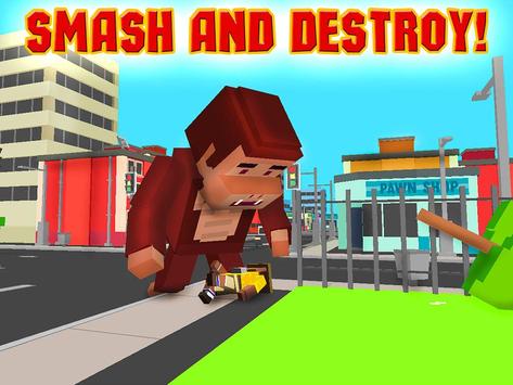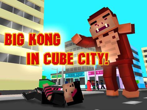 Huge blocky Kong is noticed on the Cube City streets! Explore the Cube City, make a rampage, wreck stuff, hunt for people! Complete different missions as a crazy gorilla or play in survival mode. Feel like a gorilla monster - destroy blocky streets, hunt and do other crazy stuff! Rampage is everywhere.