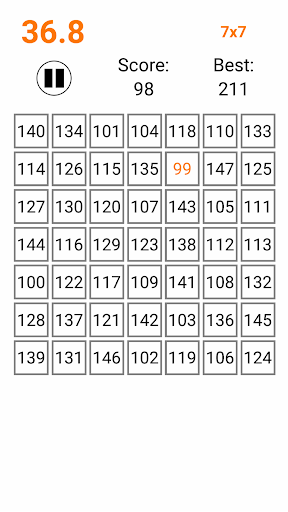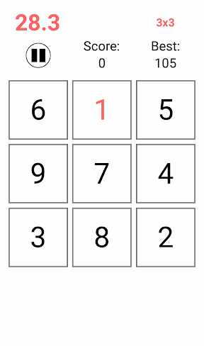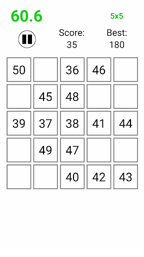 Successive numbers are distributed randomly in a grid. Hit them as quickly as possible in ascending order (1,2,3,4,5,…). Hit as many numbers as possible before time runs out.