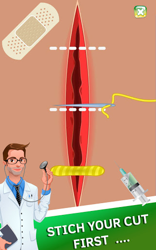 - ব্যবহারের সেলাই এবং একটি বাস্তব হাত ডাক্তার মত হাতে ব্যান্ডেজ!