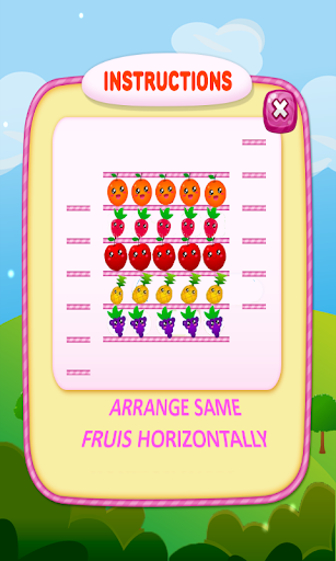 Easy to play and nice game, it is enough to arranger the same fruits in a line of the matrix.