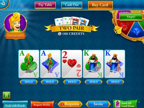 Play with friends to unlock strategic advantages helping you beat each level with slot credits, card draws and antes. Along the way earn cards for every star you earn on each level and build a poker hand by trading cards with your friends!