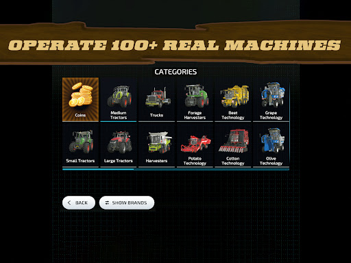 • যতক্ষণ না বিভিন্ন ধরণের ফসল রয়েছে, এখন আঙ্গুর এবং জলপাই সহ বিভিন্ন ধরণের ফসল সংগ্রহ করুন।জন ডিয়ার, নিউ হল্যান্ড, ফেন্ড্ট এবং আরও অনেক উল্লেখযোগ্য নির্মাতাদের কাছ থেকে প্রামাণিক, লাইসেন্সপ্রাপ্ত যানবাহনগুলি