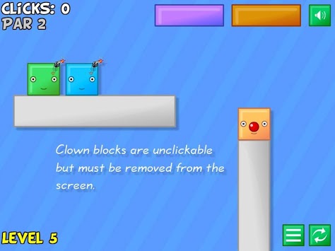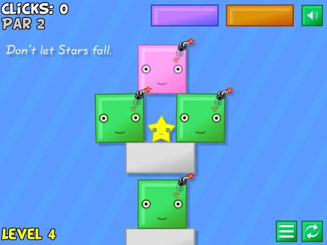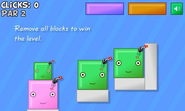 Click on explosive blocks at the right time to clear the screen of blocks. Use only necessary clicks to meet par in each stage.
