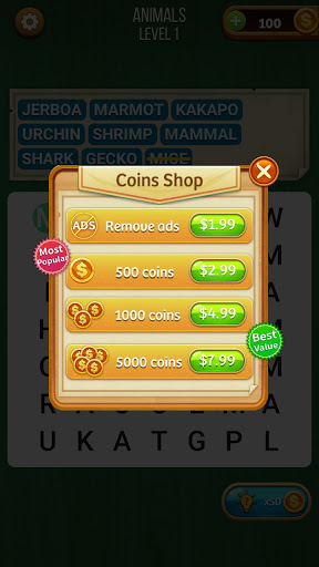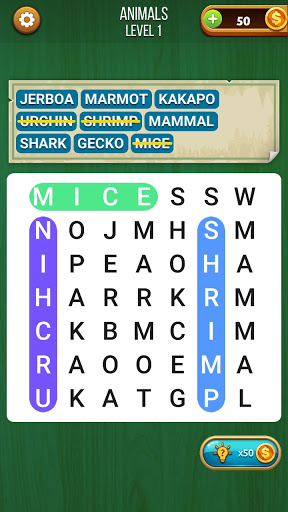 ওয়ার্ড অনুসন্ধান গেম অ্যাপ্লিকেশনটি আপনার মস্তিষ্কের জন্য একটি workout হিসাবে ব্যবহার করা হয় এবং একই সময়ে আপনার শব্দভান্ডারটি বিস্তৃত করে।