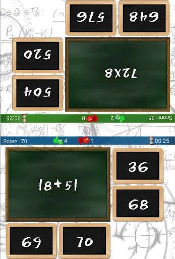 Solo (1 player) or duo (2 players) train your mental arithmetic through 2 games types and several difficulty levels.