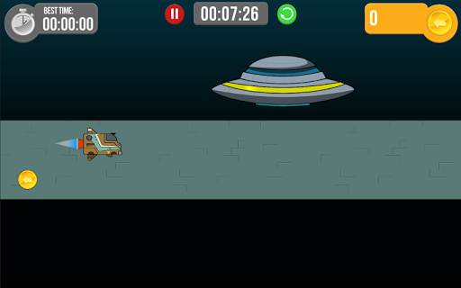 It's you and your rocket van against the clock in this quick action racing game. Pick 1 of 16 levels and race through it as fast as possible while avoiding obstacles, hazards and the occasional flying saucer. Gather coins along the way to purchase new rocket vans that are beefier, faster and turn on a dime.