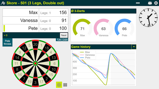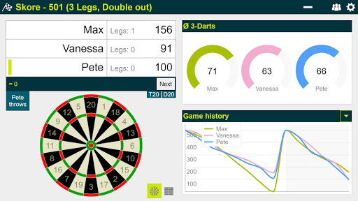 * DARTS: With game types 301, 501, 701 or general X01 you can choose between double-out and any checkout and you will be shown information on possible checkout combinations. But there are also other game types such as Cricket, Killer, Shanghai or Around-the-Clock supported.
