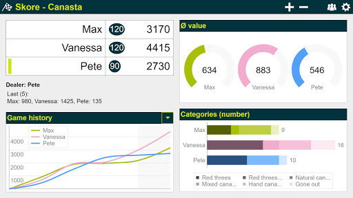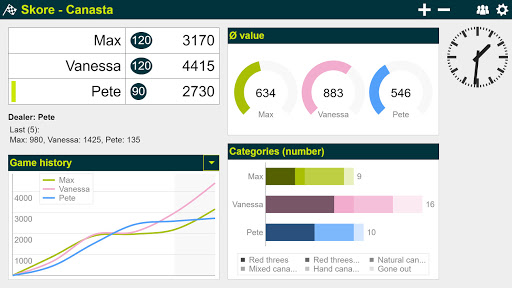 * CARD GAMES: The name Skore was created as a combination of the card game Skat and the word score. In addition to Skat, many other popular card games such as Canasta, Rummy, Cribbage, Euchre, Whist, Spades, Hearts and many more are supported.