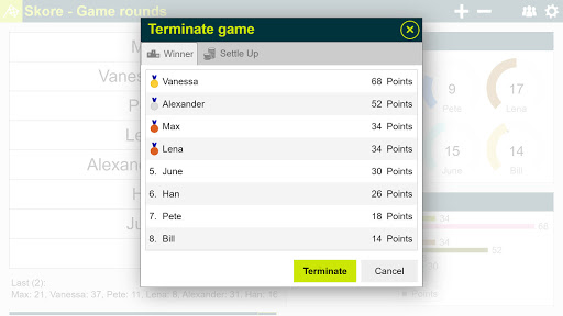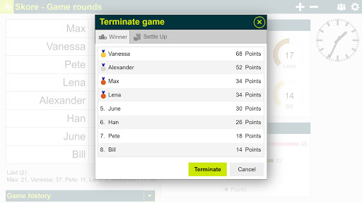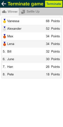 * GENERAL GAME TEMPLATES: If you don't find specific support for your game in the app, just use a general template. In this way, for example, points can be recorded for all players present in each game round.