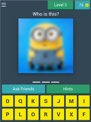 The idea of the game: Guess the picture and write the answer in a correct spelling way, and every new level you win 30 coins, there is a way to help you as writing the first letter or skipping the entire level
