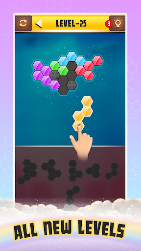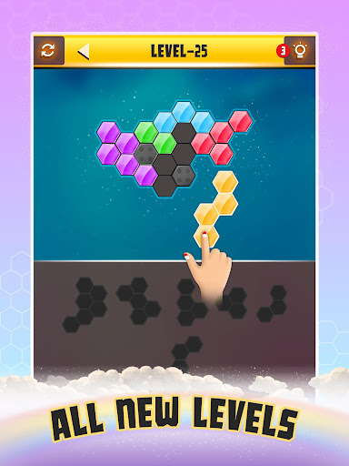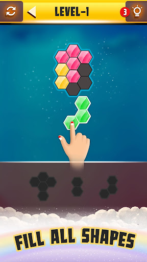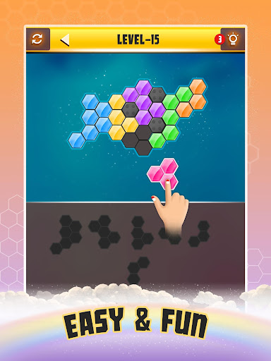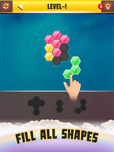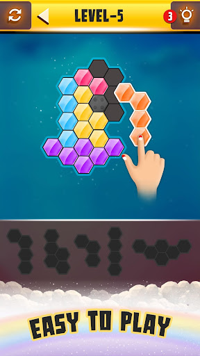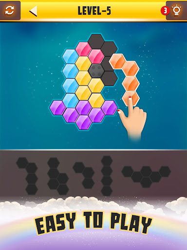 • ট্যাপ, টেনে আনুন, এবং আপনার এ বোর্ডে হেক্সা আকারগুলি ফিট করুন নিজস্ব গতি।