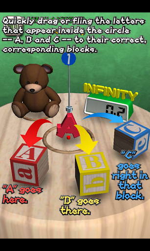 একটি সহজ এখনো আসক্ত খেলা: দ্রুত লুকিয়ে থাকা অক্ষরগুলি টেনে আনুন - A, B এবং C - তাদের সঠিক, সংশ্লিষ্ট ব্লকের কাছে।
