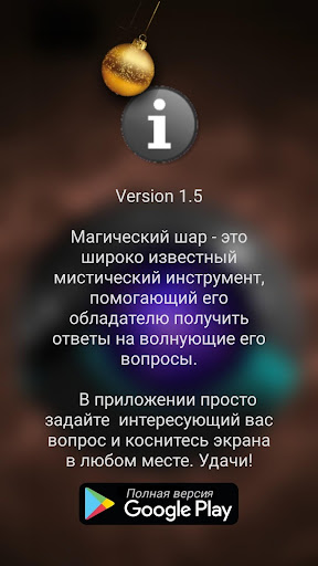 ম্যাজিক বলটি একটি সুপরিচিত রহস্যময় বস্তু যা তার মালিককে সঠিক সিদ্ধান্ত নিতে বা নির্দিষ্ট ইভেন্টের সম্ভাবনা শিখতে সহায়তা করে। এই অ্যাপ্লিকেশনটি আপনাকে সিদ্ধান্ত নেওয়ার সময় সহায়তা করার সুযোগ দেয়।আমি আশা করি তিনি আপনাকে সাহায্য করবে।শুভকামনা!