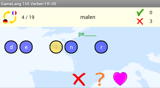 Wenn alle Buchstaben richtig zugeordnet sind, zeigt die Anwendung 2 Sätze mit den Verben in beiden Sprachen.