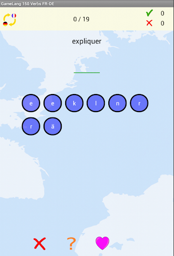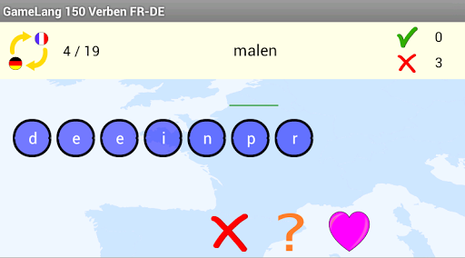 Die Buchstaben des französischen Wortes sind gemischt und du musst sie in die richtigen Reihenfolge bringen.