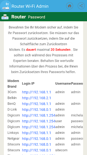 Alle Modems / Router admin Passwort und IP-Adresse info app.