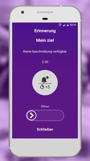 Sie können zum Ausführen des Ziels eines beliebiges Datum angeben. Die App wird Sie zum richtigen Zeitpunkt mitteilen. Intuitives Design ermöglicht eine einfache Arbeit mit der Anwendung.