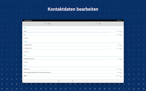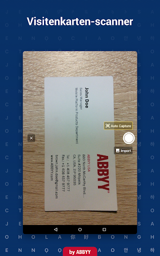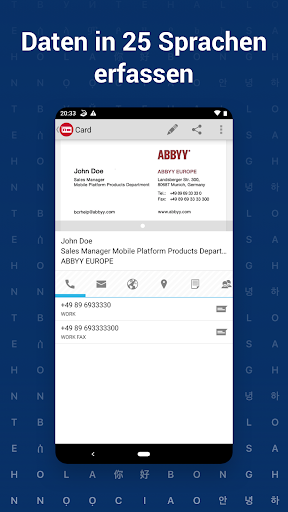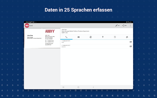 ✓ Nie wieder Kontaktdaten mühevoll eintippen - Unübertroffene Qualität und Geschwindigkeit der Texterkennung dank der ausgezeichneten ABBYY Mobile OCR-Technologie.