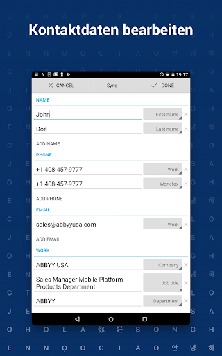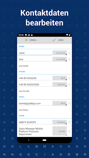 ✓ Kontaktdaten aus Visitenkarten in 25 Sprachen direkt auf Ihrem smartphone übertrage, ganz ohne abtippen