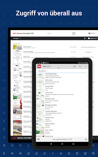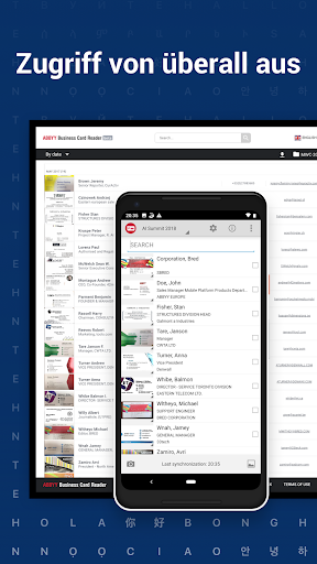 ✓ Synchronisierung mit Smartphones, Tablets und Computern um Business-Karten-Datenbank problemlos, aktualisiert und zugänglich von allen Ihren Geräten auf ABBYYBCR.COM.