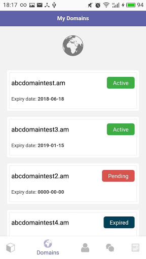 Mit der ABC-Domain-App kann man seine Domäne, Hosting, SSL-Zertifikate und andere von ABC-Domäne bereitgestellte Dienste verwalten.