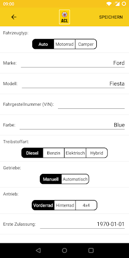- Speichern Sie die Daten Ihrer Fahrzeuge die Sie regelmäßig benutzen in der ACL-App.