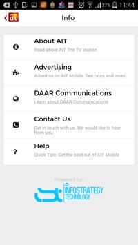 Its main features include recent News Updates, TV Programs and Schedule, Videos, Weather Update, AIT Information interfaces (About AIT, DAAR, and so on) and contact information sections.