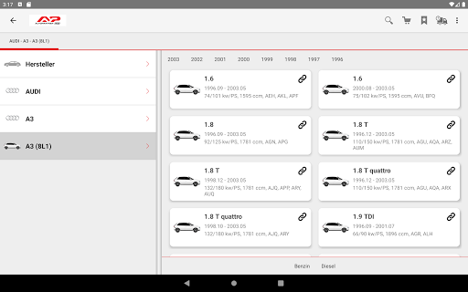 A Die APCAT App bietet einen intuitiven und schnellen Überblick über Auto- und Motorradteile aus fast 300.000 Referenzen, die von Auto Partner angeboten werden. Es erlaubt Ihnen, die Teile nach folgenden Kriterien zu suchen: