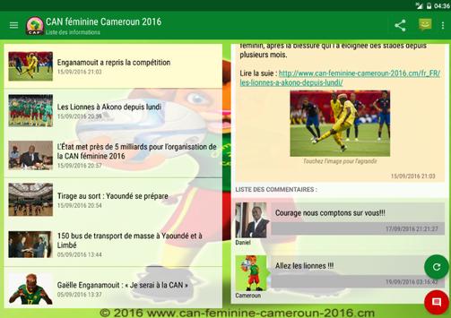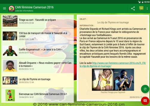 The Android app "Africa Women Cup Of Nations Cameroon 2016" has as main objective to enable African Internet users and the world to find the latest news on the competition, schedule of games, results of matches and rankings by team made updated in real-time.