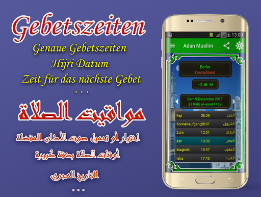 - Zeigt die Zeitpläne des Adan muslim gebetszeiten des Tages an.