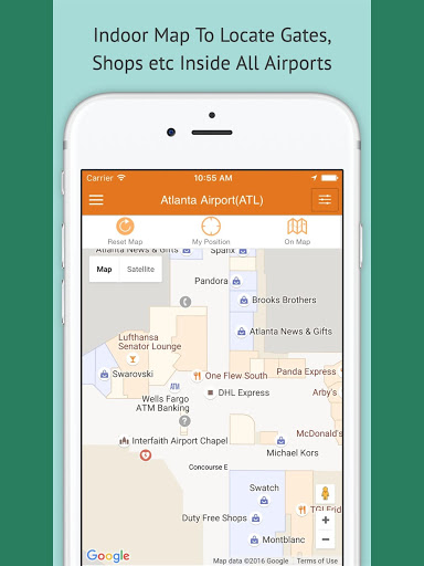 Mit der Flughafenkarte können Sie nach Orten wie Toren, Hotels usw. innerhalb eines Flughafens suchen. Suchen Sie mit der MapzApp für alle Flughäfen nach Abfluggates, Hotels, Parkplätzen, Geschäften usw. Setzen Sie ein Lesezeichen für Ihr Lieblingsflughafentor, Hotels auf der Flughafenkarte. Finden Sie Flüge in Flughäfen und buchen Sie Flüge. Die Flughafenkarte ermöglicht die Navigation in Innenräumen am Flughafen.