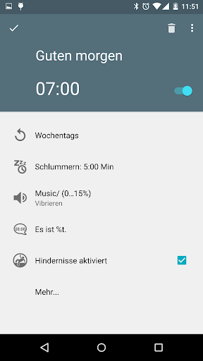 Dann aktiviere Hindernisse, die du lösen musst, ehe sich der Wecker ausschalten lässt!