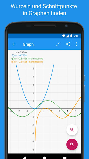 Zeichnen Sie Funktionen, finden Sie Schnittmengen und lassen Sie sich Wertetabellen der Funktionen auf einer einfachen Bedieneroberfläche anzeigen.
