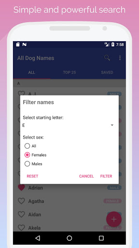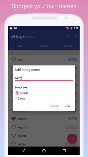 Mit dieser App können Sie Hunderte von Hunde- und Welpennamen durchsuchen.Sie können Ihre Favoriten problemlos an Ihrem Gerät speichern und Ihre eigenen Namen beitragen.