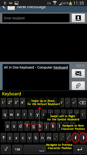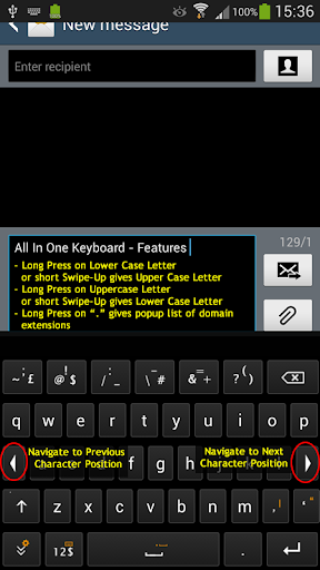 Links- und Right-Pfeiltasten sollen zwischen Buchstaben navigieren, die Sie gerade eingegeben haben.