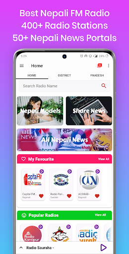 , um von ganz Nepal aus verschiedenen Bezirken und Pradesh auszuwählen. Einige der beliebten Radiosender in der App sind: