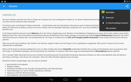 Das Handbuch enthält eine Beschreibung von Krankheiten wie: blutdruck, diabetes, durchfall, fieber, pickel, kopfschmerzen, ebola.