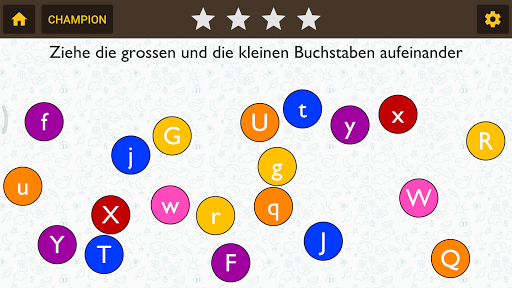 Es ist ein einfaches Spiel in dem Gross- und Klein-Buchstaben zum ziehen und paaren, vorgestellt werden. Man fängt mit einem Buchstaben an und es wird immer schwieriger je mehr das Kind vorankommt. Die App fördert das Kind und ermutigt es mehr zu versuchen. Es is immer eine spassiges Spiel für Kinder, Objekte die Sie schon kennen zu paaren.