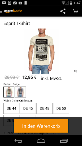 Amazon BuyVIP bietet Dir täglich neue und exklusive Verkaufsaktionen mit Top Marken zu Top Preisen. Daher unser Tipp: Jetzt gleich die Amazon BuyVIP App downloaden und nie wieder eine unserer begehrten Verkaufsaktionen verpassen. Egal ob von zu Hause oder unterwegs - so kannst Du Dich jederzeit über unsere aktuellen Angebote informieren und direkt in einem sicheren Umfeld von Deinem Handy aus bestellen.