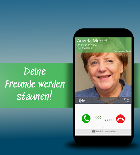Mit dieser App kannst du einen vorgetäuschten Telefonanruf von Angela Merkel empfangen. Spiele deiner Familie und deinen Freunden einen Streich! Du kannst einen Timer einstellen, um den Prank-Anruf erst später zu erhalten!