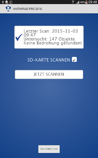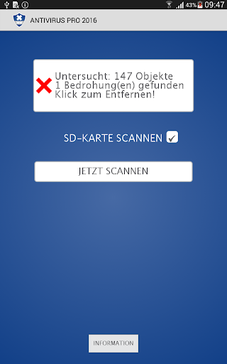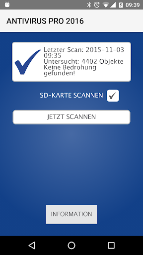 Antivirus Pro 2016 – Mit der neuen 2016 Scan-Technologie schützt Antivirus Pro dein Android Telefon oder Tablet vor allen Gefahren die durch Viren, Malware und Spyware auftreten und das auch ganz ohne Werbung. Diese Antivieren Software entdeckt Bedrohungen in Apps und sogar in Datein im Speicher. Immer wenn eine neue App installiert wird, checkt Antivirus Pro diese auf Viren.
