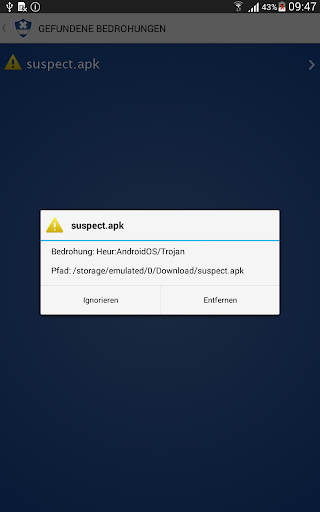 ✔ Finden Bedrohungen in Apps und auf SD-Karte
