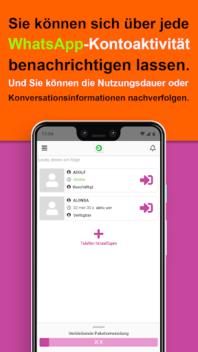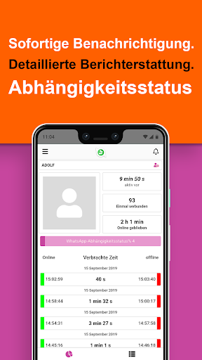Die Analyse der Anwendungsnutzung zeigt Ihre tägliche WhatsApp-Nutzung und Ihre letzte Online-Zeit für WhatsApp. Außerdem erfahren Sie, wie viel Zeit Sie mit Ihrer Anwendung verbringen.