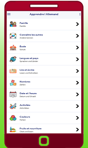 Vocabulaire Allemand Français est Gratuit pour tous les utilisateurs. Vous pouvez apprendre des phrases et des phrases complexes en un rien de temps. Parler Allemand l'application est utile pour les hommes d'affaires et les voyageurs d'apprendre les rudiments de la langue étrangère. Les utilisateurs peuvent apprendre la langue allemande et sa meilleure façon d'apprendre les alphabets allemands et la grammaire pour les débutants. Numero Allemand est également utile pour apprendre les verbes et le vocabulaire. Il fonctionne efficacement en ligne ainsi que hors ligne.