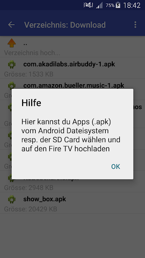 - Beliebige Dateien (apk, jpg, mp3, etc) auf den Fire TV hoch laden