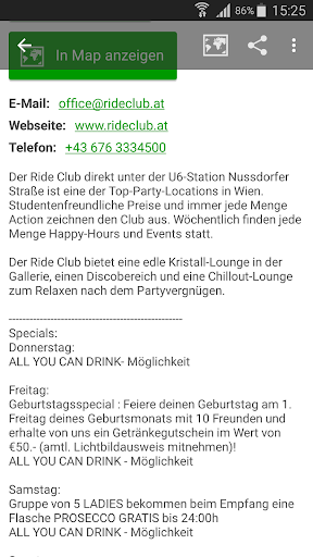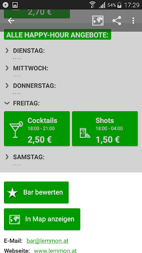 x) Informiere dich über die Bar (Adresse, GPS-Koordinaten, Telefonnummer, Email, Webseite, Bewertung)